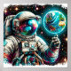Um astronauta solitário flutua no espaço contra o nítido pano de fundo da Terra e numerosos corpos celestes. Cores vibrantes e detalhes intrincados capturam a vastidão e mistério do universo.