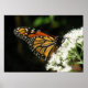 Migrando borboleta Monarca. Laranja com manchas brancas nos bordos e corpo da asa preta. Fotografado em setembro em flor branca.