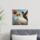 Uma pintura mesmerizante que representa um beija-flor vibrante a subir graciosamente sobre um campo pitoresco de flores silvestres coloridas.