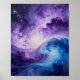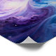 Uma pintura original inspiradora captando o movimento dinâmico e giratório de uma nebulosa ou nuvem cósmica. O trabalho de arte é dominado por tons vívidos de azul profundo e roxo rico, com pontos brilhantes de luz sugerindo estrelas distantes e energia eérea.