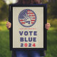 Poster com o retrô estilo Liberty crachá gráfico com "Save Our Democracy, Vote Blue, 2024" em texto patriótico e colorido sobre fundo brando