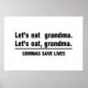 Vamos come vovó. Coma vamos, vovó. Os vírgulas salvam vidas.