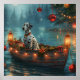 Mergulhe na magia da temporada de férias com esta ilustração lindamente detalhada, mostrando um cachorro orgulhoso sentado em um barco festivamente decorado, deslizando através de um lago de Natal sereno. As luzes cintilantes dos pinheiros próximos refletem sobre a água, lançando um brilho quente e festivo que melhora o conforto ambiente. Os ornamentos pendem do lado do barco, enquanto as lanternas brilhantes iluminam o caminho, criando uma cena que captura a verdadeira essência do calor e alegria natalinos. Esta trabalho de arte nostálgica traz um toque de magia de férias para qualquer espaço, perfeita para aqueles que apreciam o espírito da estação.
