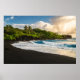A estrada para Hana é uma viagem incrível e provavelmente a mais popular de Maui. Uma das coisas que deve parar no caminho é a praia de areia negra. A água é fria, traiçoeira e infestada por tubarões. Waianapanapa State Park ostenta uma praia de areia preta que é simplesmente incomparável na ilha de Maui, ou em qualquer outro lugar, por acaso. Está aninhado numa enseada privada, os grânulos pretos de breu escutam, escuros e misteriosos — há algo sobre isso que desenhar pessoas aqui. Criado há muito tempo pelo surf rugoso.