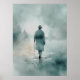 Um poster com uma imagem impressionante de um viajante caminhando por uma paisagem névoa, pintada em estilo aquarela. A atmosfera fantástica e um pouco melancólica estimula a imaginação do espectador. Decorar seu quarto com ele criará um espaço tranquilo e calmo.