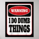 Poster Warning I Do Dumb Things - Sarcasm Stud Stuff Them