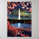 Vintage image of the Washington Memorial à noite enquadrada por cherry blossoms em Washington, DC.