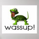 Um design de sorte feliz com uma tartaruga bobo com sua língua pendurada e as palavras, WASSUP!, embaixo. Muito fofo, muito divertido.