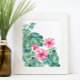Perfeito para quartos modernos, banheiros e áreas vivas na sua casa de praia tropical. Este impressão de tendência é uma reprodução usando minha mão original pintada aquarela monstera palm folhas e flores de hibisco em tons de azul-rosa, verde e azul-turquesa. Esta design coordena-se com a minha coleção de folhas de palma monstera botânica. Para ver mais visite www.zazzle.com/dotellabelle Faz um presente de Dia de as mães bonito.