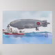 Poster Watercolor of a dirigible tethered to a boat