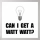 Elétricos, cientistas, engenheiros elétricos e donos de uma loja de iluminação piadas posso obter um watt? Veja este design personalizado engraçado em camisetas, camisas, canecas, capas, presentes e roupa.