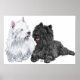 Criado da minha obra de arte original, aqui está um Westie com um amigo negro do Cairn Terrier, certo que encontrará um nicho entre suas coleções se você tiver ambas as raças Terrier! Vestuário de comprar, cartões de saudação, itens domésticos e presentes com este Westie com o Cairns design para você mesmo, ou para aquele especial cão que ama alguém na sua vida!