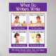 Help young learners explore the many types of writing with this engaging “What Do Writers Write” anchor chart. Designed for Kindergarten, first grade, and second grade classrooms, this visual guide introduces students to different forms of writing, including stories, letters, lists, and personal ideas. With simple, consistent language and supportive watercolor illustrations, this chart makes writing concepts easy to understand. Students will learn that writing can be creative, practical, and meaningful, helping them build confidence as they develop their skills. This chart is perfect for writing mini-lessons, classroom discussions, and daily reference during writing time.