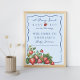 Poster Whimsical Strawberry Blue Baby Shower Welcome Sign