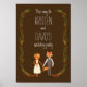 Póster Whimsical Woodland Cat & Fox Casal Sinal de Casame