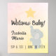 Sip Whimsical & Veja o novo sinal de poster de bebê / chá de fraldas de apresenta elefante de bebê com estrela e texto totalmente personalizável sobre fundo de gradiente pastel. Disponível em formato impressão e digital.