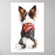 Essa ilustração encantadora captura a visão de trás de um cão Papillon enfeitado com uma bandana vermelha festiva com flocos de neve brancos. O pelo luxuoso do cão, misturando tons de marrom, preto e branco, cria um contraste impressionante em relação ao fundo branco. O detalhe caprichoso na textura do pelo e o toque lúgubre do acessório de férias evocam um quente e alegre espírito de inverno. Perfeito para amantes de cachorros e entusiastas de férias, assim como!