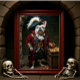 Esta imagem impressionante mostra um Bulldog Francês branco com pontos pretos, magníficos vestido de capitão pirata. Ele veste um chapéu tricórnio e um casaco vermelho elaborado com um trim de ouro brilhante. Abaixo, um colete azul com detalhes dourados e um jabot branco recheado completam o distinto uniforme. O canino real está confiante ao lado de um tesouro aberto, transbordando de ouro, incorporando um explorador sério e aventureiro.