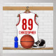 Se você precisar desse design em uma combinação de cores diferente para as cores da sua equipe de basquete, entre em contato conosco através da loja GiftsBonanza antes da compra e ficaremos felizes em ajudar com sua solicitação personalizada. Outras cores do grupo disponíveis no repositório. Uma camisa de basquetebol branca e vermelha, personalizável, pendurada num cacifo com basquete, tênis de basquete e uma garrafa d'água. A camisa é personalizável com seu próprio número e nome para criar um presente único para o jogador de basquete, fã de basquete ou treinador de basquete. série de promocionais: sgb01