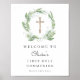Apresentando um encantador e personalizável sinal de boas-vindas moderno para uma Primeira Comunhão Sagrada, adornada com um delicado design de lírio das flores do vale que graciosamente circundam uma cruz ornamentado, impressa a ouro. O fundo é primitivo e limpo, permitindo que a elegante carta brilhe, criando uma atmosfera bela e convidativa para esta ocasião sagrada. Esse cartaz combina perfeitamente a tradição com o estilo contemporâneo, fazer-o uma peça central memorável para a celebração.
