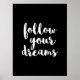 Esta é uma bela poster impressão de de de arte apresentando seguir sua citação de sonhos em branco. Você pode alterar a cor de fundo do poster.