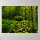 Volte para um paraíso pré-histórico! Esta poster de arte nos convida a um cenário de floresta de luz solar e sombra. O tapete verde-selvagem e o chão da floresta são carpetes amarelos. As árvores ao redor enquadram esta paisagem cênica e rural.