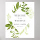 Bem-vindos convidados para o seu casamento com o nosso poster Wild Meadow, apresentando uma fronteira geométrica de verde-aquarela, folhagem e folhas botânicas, com "bem-vindos ao nosso casamento", seus nomes, e data de casamento em uma mistura de serifa moderna e tipfaces itálicas.