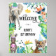 O primeiro convite de aniversário do garoto bonito e divertido com ilustração de animais de festa safari.