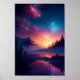 No extremo da natureza selvagem, uma noite cativante se desenrola. O céu é adornado com nuvens coloridas, e uma lua pequena e encantadora agarra o horizonte. Este trabalho de arte digital transporta você para um reino de encanto sob o abraço de uma bela noite.