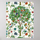 Poster em um William Morris Art Nouveau assume um padrão tradicional de "árvore da vida", apresentando árvores de fantasia cercadas por ramos cheios de flores e pássaros exóticos, tons de verde esmeralda, bronzeado, ouro, vermelho e azul turquesa, sobre um fundo branco