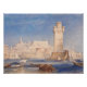 Rodes. Joseph Mallord William Turner (1775 - 1851). Uma paisagem agradável em tons rosas e azuis. No primeiro plano estão barcos e naves na baía perto das paredes da cidade. no meio, há uma torre alta. Ao fundo há uma cidade com casas de pedra. Reprodução de famosas imagens de arte no dominio público.