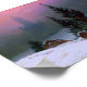 Poster com a pintura petrolífera de Caspar David Friedrich (1811). Neve e pinheiros enchem a paisagem. Um jovem rezou sobre uma rocha para a Santa Cruz. Uma igreja aparece no nevoeiro. Um maravilhoso presente de Natal!