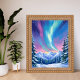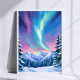 Poster Winter Night Northern Lights Watercolor Mountain