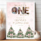 Celebrate your little one’s milestone with this Winter ONEderland Pink Bow First Birthday Photo Welcome Poaster featuring snowflakes, festive Christmas trees with pink bows, and three photo spots inside the word “ONE.” Easily personalize all text and photos for a magical winter birthday celebration.