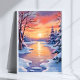 Poster Winter River Sunset Landscape Snow Watercolor