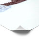 A poster with a beautiful winter scene including snowy mountains, rustic cabin and snow covered evergreens. Original artwork by W.B.