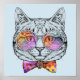Esta design apresenta um gato bonito e legal vestindo óculos arco-íris e uma gravata de arco pontilhada pela polca.