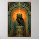 Poster Wise Owl Silhouette Art Deco Midnight Gold