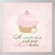 This product features a lovely pink cupcake illustrated with a romantic pink flower. It carries the message "A cupcake is a wish your heart makes" in fancy fonts. The image is very vintage and girly!