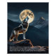 Wolf Symbolismo Poster: Os lobos não têm preferência por uma lua de cheio sobre qualquer outra e uivam mais à noite simplesmente porque são noturnos. Lobos dormem na maioria do dia e ficam acordados a maior parte da noite. O simbolismo do lobo inclui a natureza selvagem, a brincadeira, a astúcia, a coragem, a sabedoria, a força, a proteção, a lealdade, a resistência e a intuição.