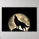 Poster Wolf Howling Full Moon Night Sepia