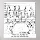 Uma ovelha espancada a olhar para coiotes numa fila diz, "É ele. O número 3 é aquele que me atacou."