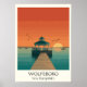 Capture the peaceful charm of Wolfeboro, New Hampshire, with this vintage style design. Featuring a picturesque lakeside gazebo under a beautiful sunset, reflecting on calm waters.