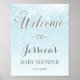 Excelente de sinal de boas-vindas azul-claro e prateado para um tema de festa da Wonderland de inverno. Feita para combinar com nossa Coleção Azul de Floco de Neve.