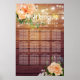 Mais de 12 Modelos de Poster de Gráfico de Casamento de Mesa - Script Elegante com Rosas Brancas de Pêssego Floral e Luzes de Cordas no Fundo da Madeira Rústica. Um Design perfeito para o seu grande dia. Todo estilo de texto, cores, tamanhos podem ser modificados para ajustado das suas necessidades.