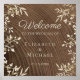 Sinal de boas-vindas, russo, elegante, floral de ouro e madeira. Perfeito para casamentos no inverno modernos.