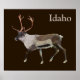 O Caribe Woodland, também conhecido como o Caribe de Montanha. O texto personalizável lendo "Idaho" também é exibido. Cariou, o único membro da família Cervidae em que tanto os machos como as fêmeas da espécie produzem galhadas, que periodicamente derramam e crescem novamente. Suas cascas balançam até o tamanho de placas jantes durante o inverno para ajudar as renas a andar sobre a neve. O nome "caribou" é de ascendência aborígene e significa "enrolador" ou "potência". Descreve corretamente o hábito das renas de cavar através da neve para chegar à sua principal fonte de comida de inverno, o líquhen, uma planta que cresce sobre rochas e latidos de árvores. Woodland Cariou é mais espessa, mais lenhadora do que outras Carionhas. O seu pelo castanho profundo torna-se quase branco no inverno. A região das Caraíbas do Woodland está quase completamente extinta nos EUA. Nos EUA, encontram-se apenas nas Montanhas de Selkirk, que abrangem Idaho e Washington norte. Mas restam apenas cerca de 45 animais nesta população! Atualmente, os seres humanos têm mais oportunidades e capacidade para entrar no habitat tradicional da espécie e afetar as suas hipóteses de sobrevivência. Por exemplo, quando pessoas moveis de neve, heli-ski, esqui de gato ou até mesmo constroem tendas, elas compactam a neve e fazem barulho, criando três problemas para esses animais. As renas têm dificuldade em cavar com neve compacta para líquen tão facilmente através da neve compacta. Com uma parte da comida cortada, devem depender unicamente do líquen que cresce sobre as árvores. A neve compactada também facilita o acesso de predadores como lobos às renas, eliminando a necessidade de caminhar por uma profunda neve. As atividades humanas também assustam as renas, fazendo-as alterar os seus padrões migratórios e comportamentos-chave associados à alimentação, à reprodução e à procura de abrigo. A população de Selkirk de renas florestais está classificada como ameaçada pela Lei das Espécies Ameaçadas de Extinção (AEE), uma vez que corre o risco de se extinguir em toda a área de Selkirk.