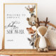 Poster Woodland Watercolor Animais Chá de fraldas Moderno