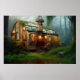 Uma oficina de estilo Steampunk em uma margem de rio da messy - um impressão de arte digital fantástica criado com o software AI