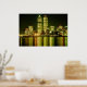 Centro Mundial de Comércio brilhando com o resto do horizonte à noite e refletido no rio